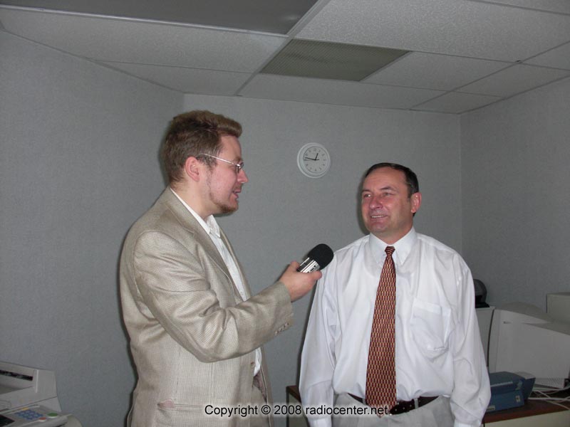 ![]() Pastor Vasiliy Gaydachuk and Andrey Nekrasov records few very first words for Russian program in Chicago. |